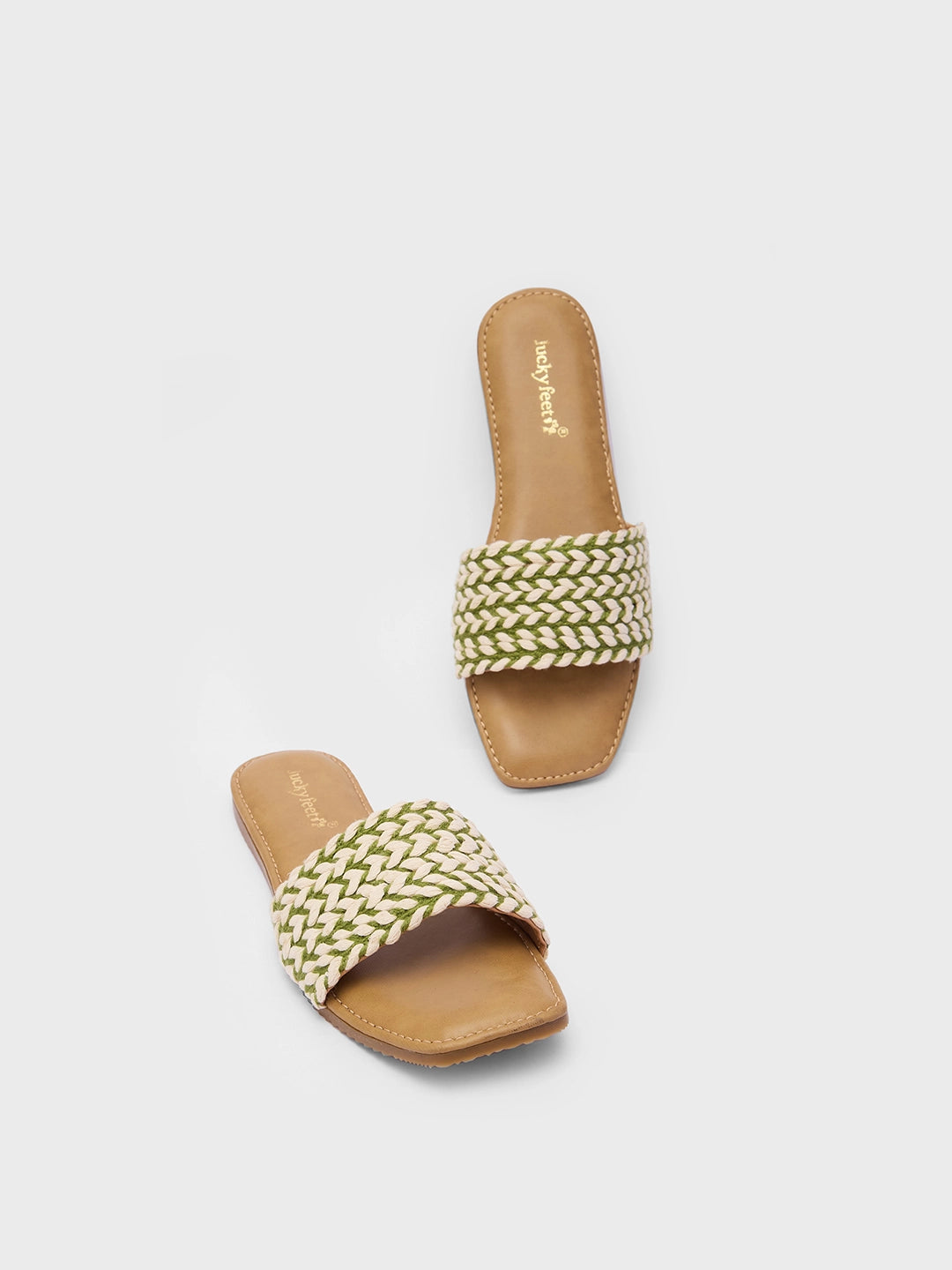 Lucky Feet Braided Flat Mules, Woven Slip-on Slipper, Women Casual Flats, Comfortable Square Toe Slipper